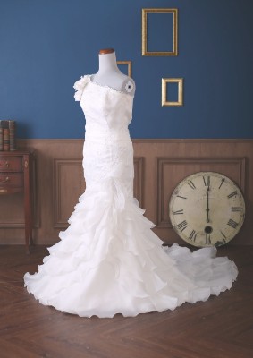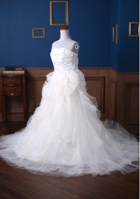 純白のフリルが付いた豪華な1着。着る人をゴージャスに見せてくれます。