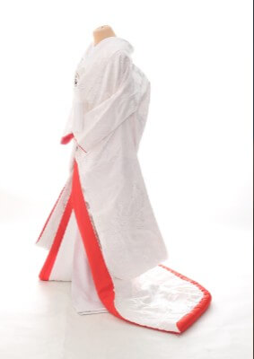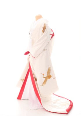 純白の中に赤のラインが入り、鶴の刺繍が映えるデザインです。