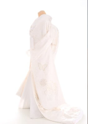 蝶と花の刺繍が綺麗な1着です。真っ白な中にもワンポイント欲しい人にオススメです。