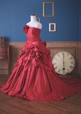 胸に付いた大きな薔薇が特徴的な真紅のドレスです。