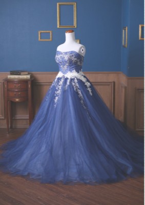 濃いブルーが肌の色に映えます。腰部分の白いレースもポイントです。